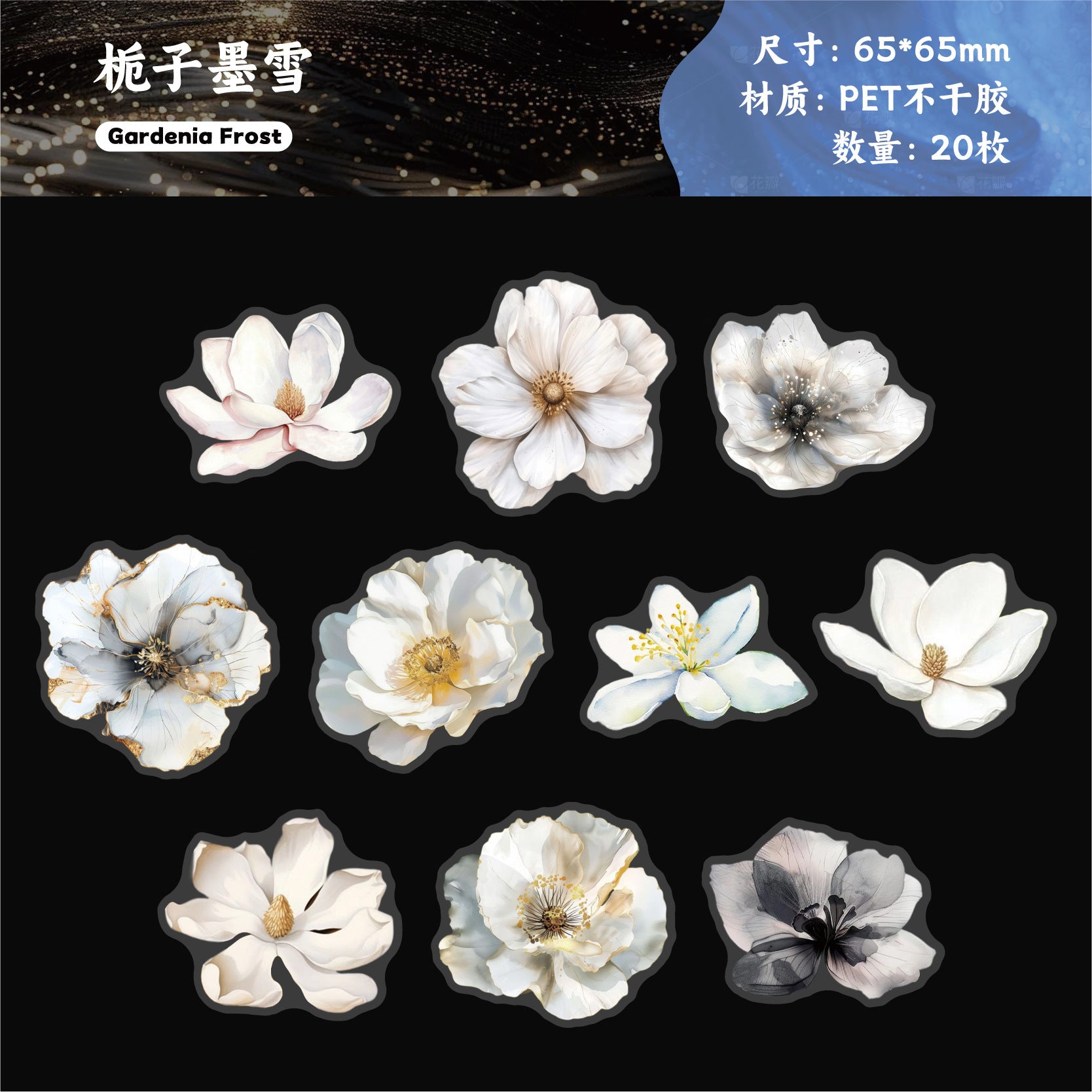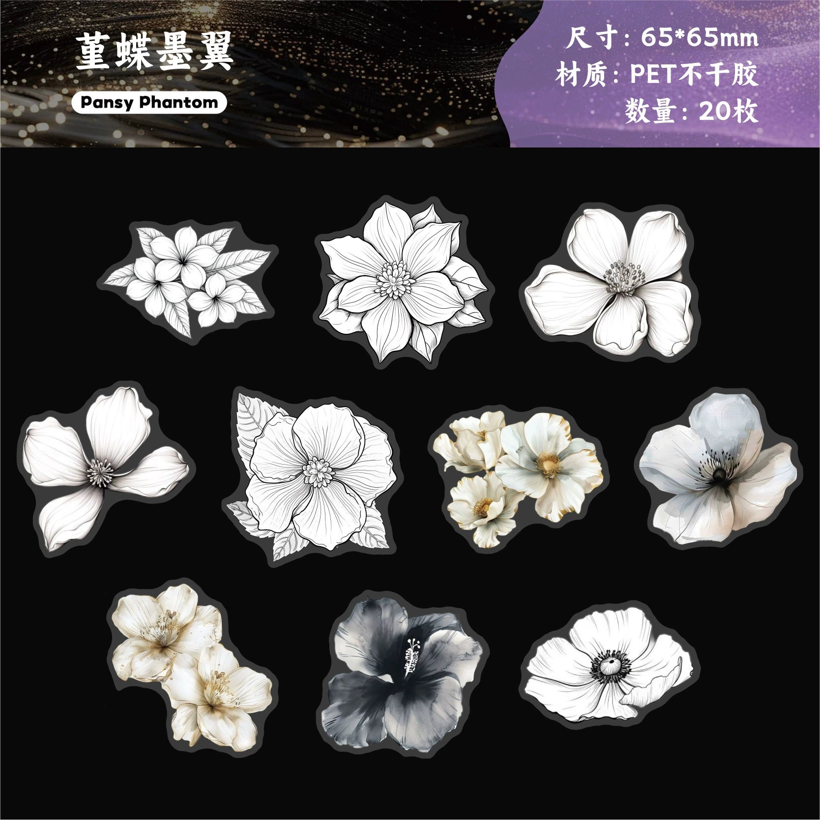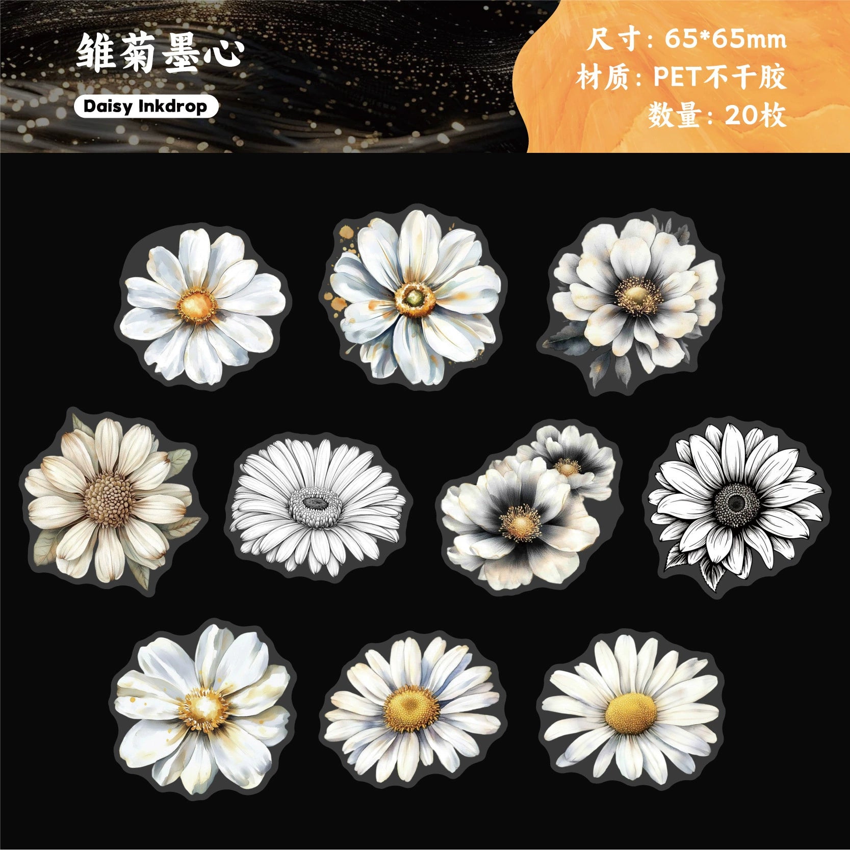 #02871 White Ink Flower Series Sticker