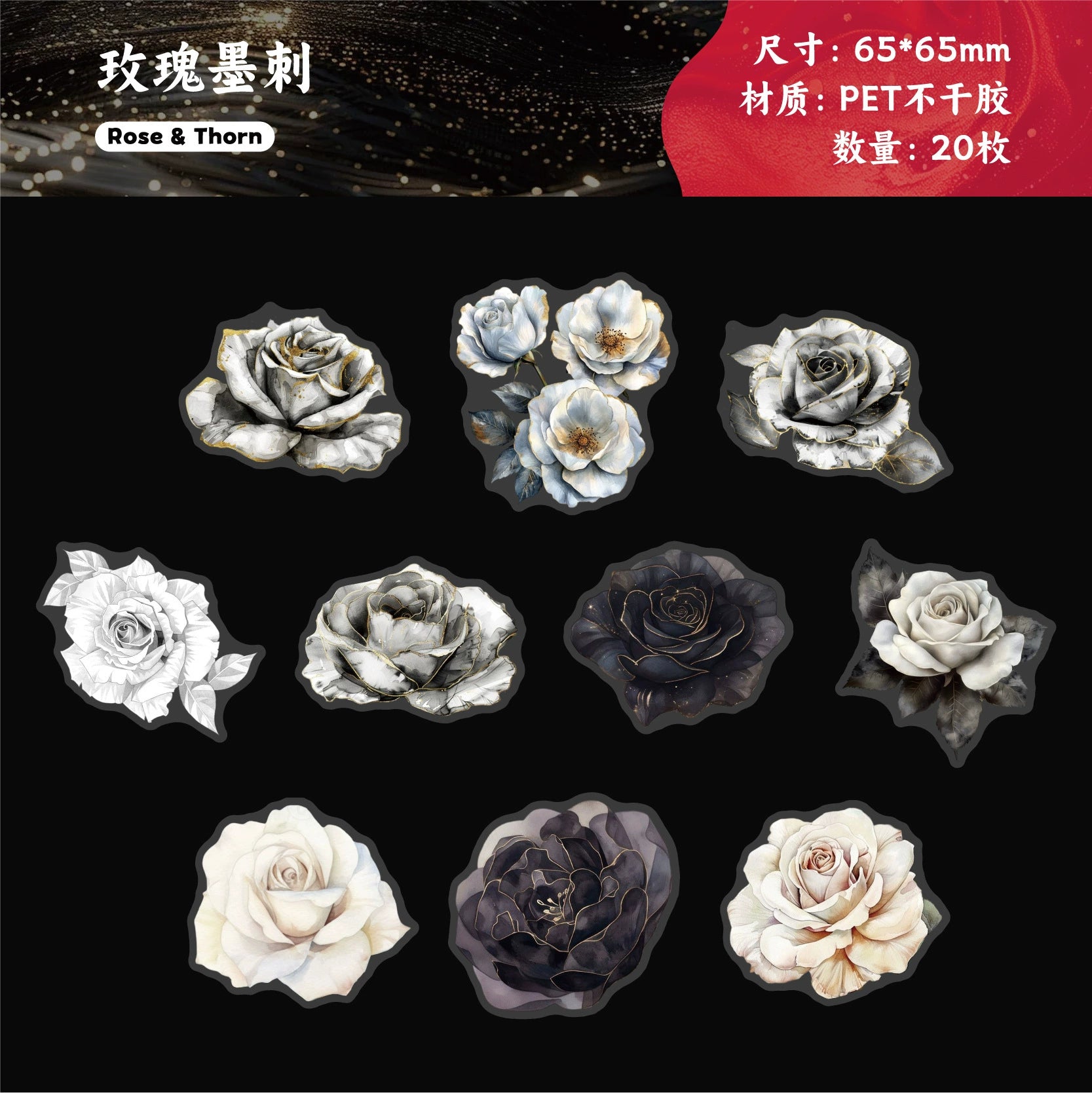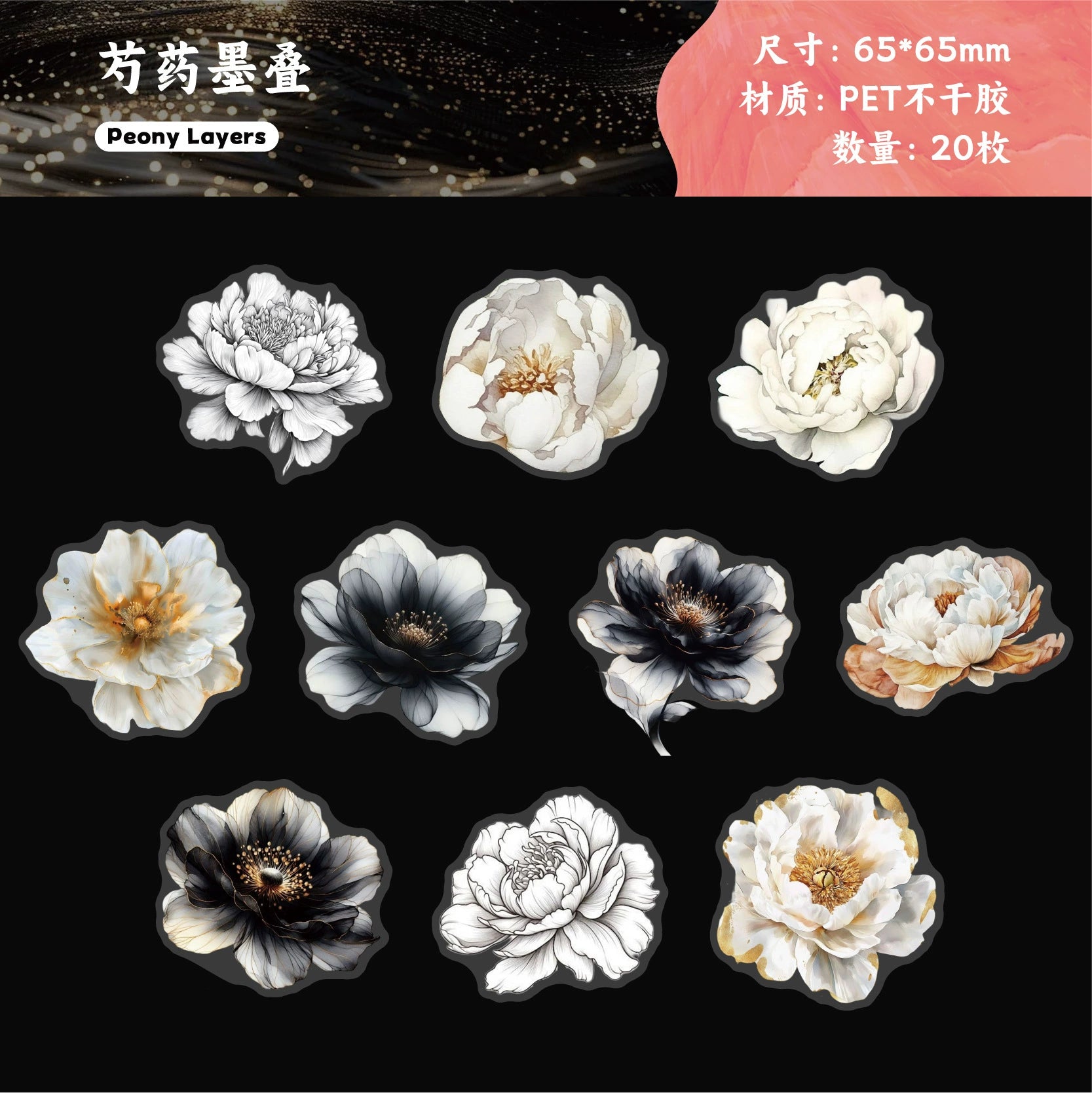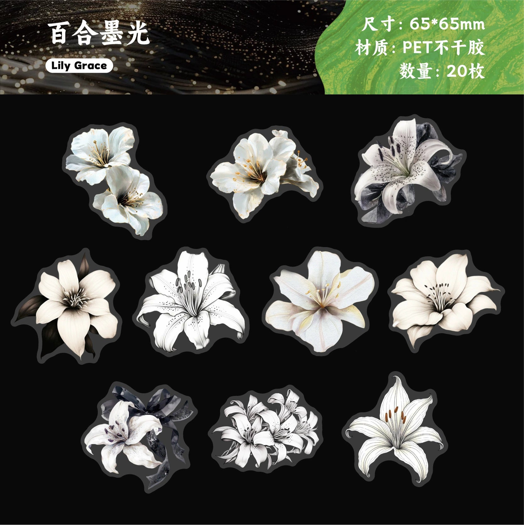 #02871 White Ink Flower Series Sticker